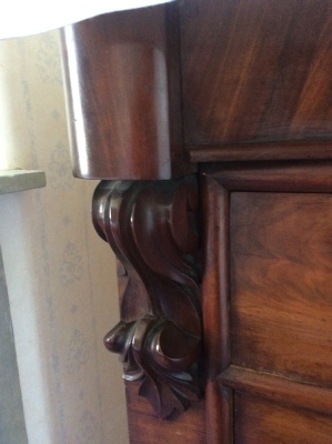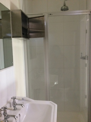 Bedroom 1 - large bedroom with high corniced ceiling and its own fireplace (not in use). This bedroom has its own bathroom which contains a Victorian, cast iron enameled bath with claw feet as well as a wash basin and WC. Apart from the bed the furniture is antique. The King size bed is brushed steel and very comfortable. This bedroom has the floor space to allow 2 x single fold-up beds.