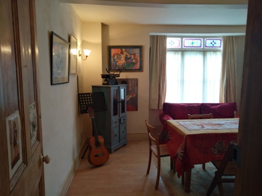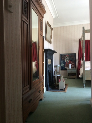Bedroom 2 - large bedroom - also with high corniced ceiling - and its own fireplace (not in use). This bedroom has its own shower room. It features a hand painted pine 4 poster double bed. This bedroom has the floor space to allow 1 x single fold-up bed.