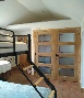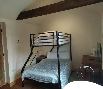 The Loft Room - family suite with triple bunk (1 double bed down and 1 single bed up), and en suite shower room with shower cubicle, WC and wash basin. This bedroom features oak beams and reclaimed pine floorboards.